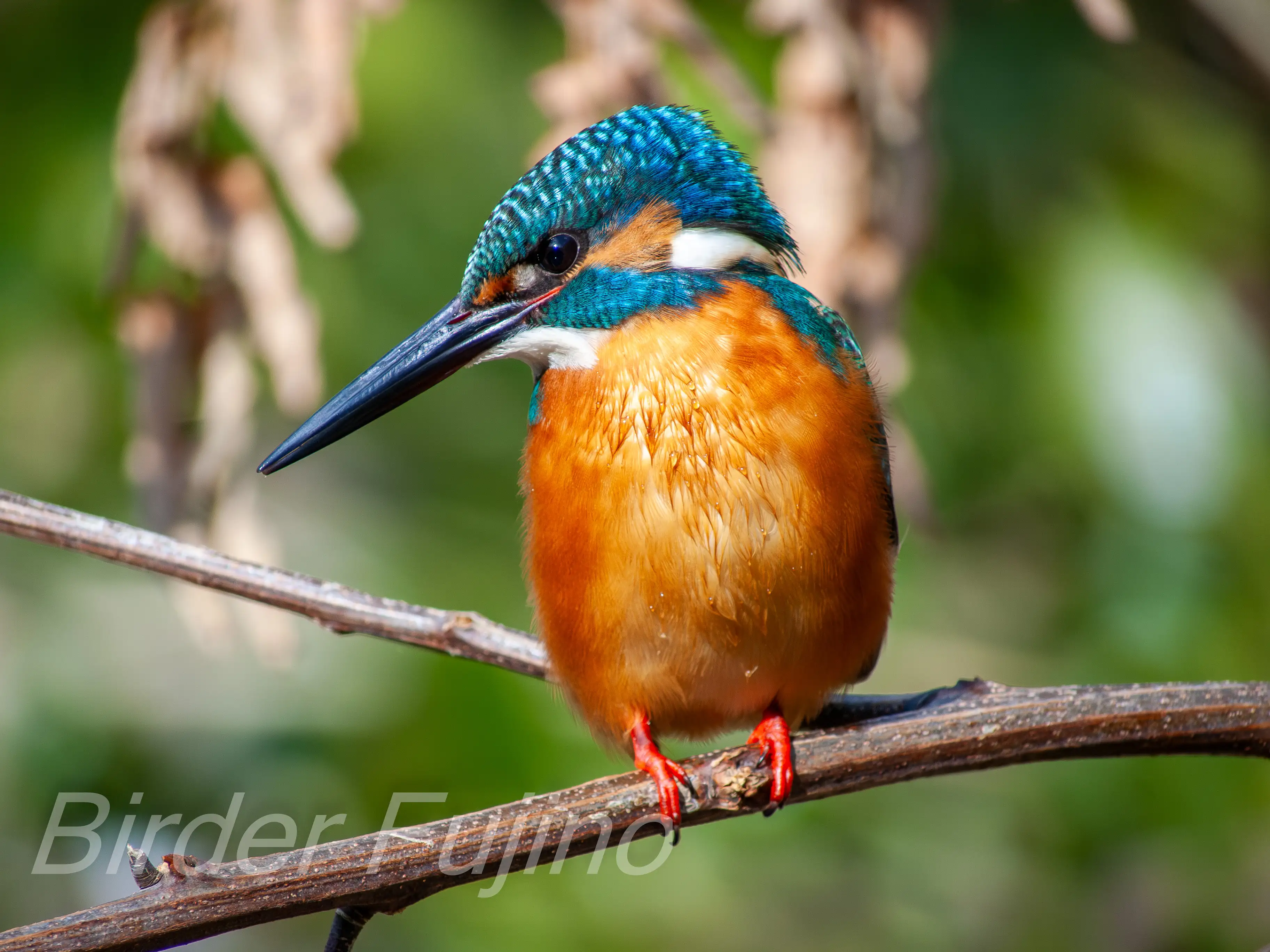 カワセミは背のブルーも綺麗ですが、頬や腹のオレンジ、喉や肩の白い羽毛、赤い足、メスのクチバシの赤色、とカラフルで本当に美しいです。
