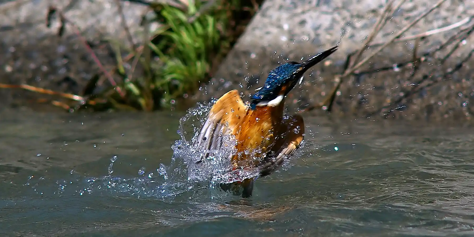 また、反応が遅いため殆どの写真が もぬけの殻 という状態です。そんな私でも飛びものの撮れる可能性が高いのはやはりダイブの着水点です。着水前は間に合いませんが、出てきたところは結構撮れます。