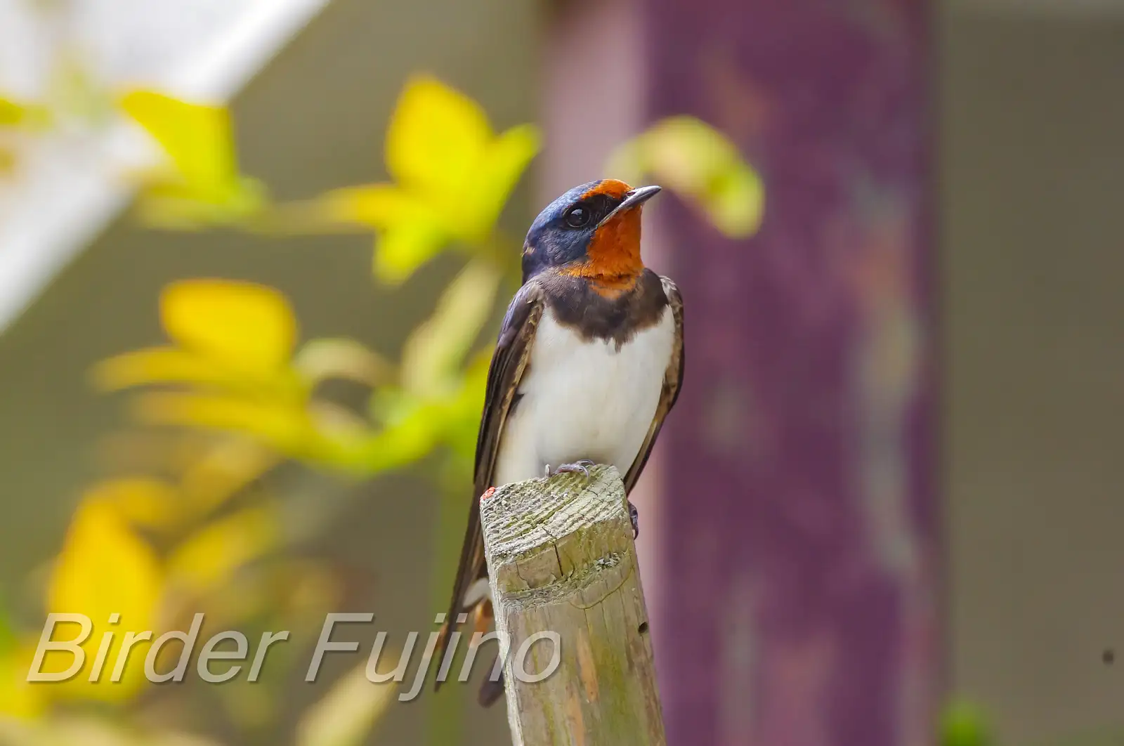 薄いオレンジ色をしています。背中の色もツバメより青さが強く奇麗な鳥です。